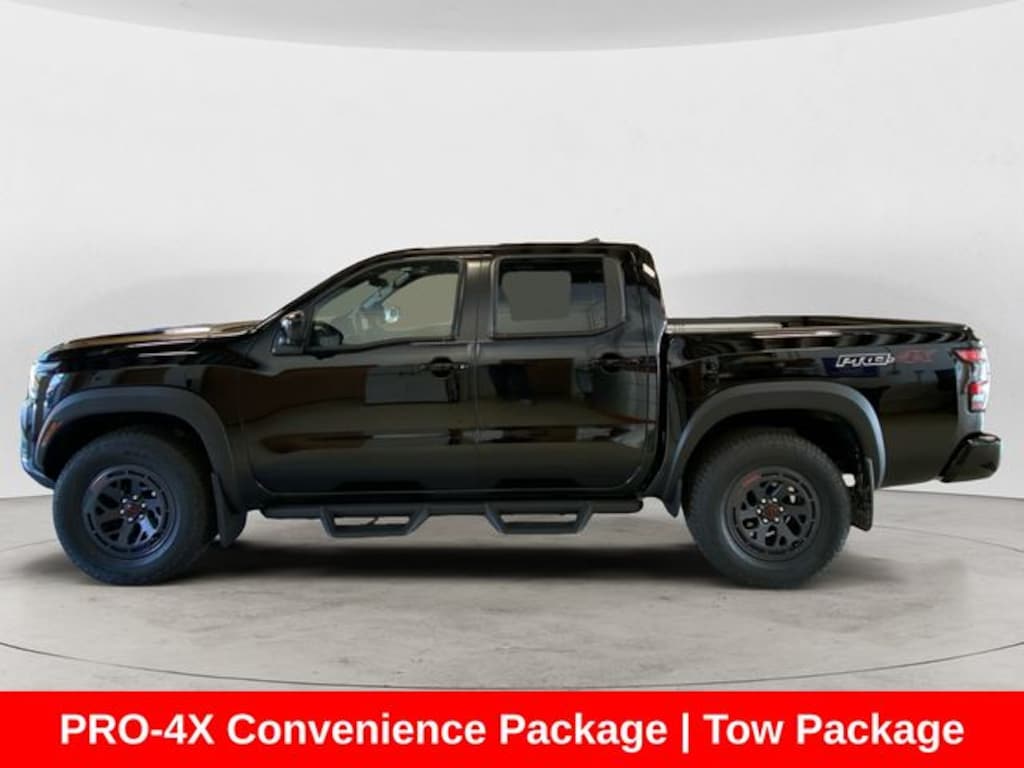 The off-road prowess of the Frontier is further enhanced by the PRO-4X Convenience Package, which includes a Tow Package and Off-Road Style Step Rails, ensuring you can take on any adventure with confidence.
